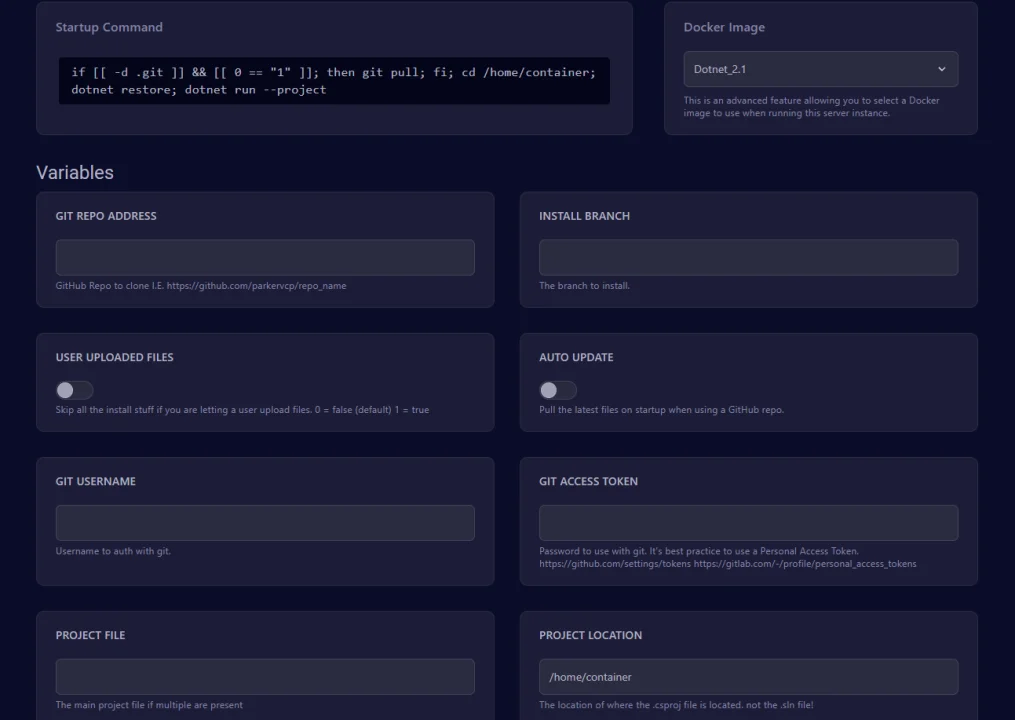 - DOCKER IMAGE: Choose the correct version of .NET (e.g., Dotnet 2.1 or newer) that your bot requires to run.
